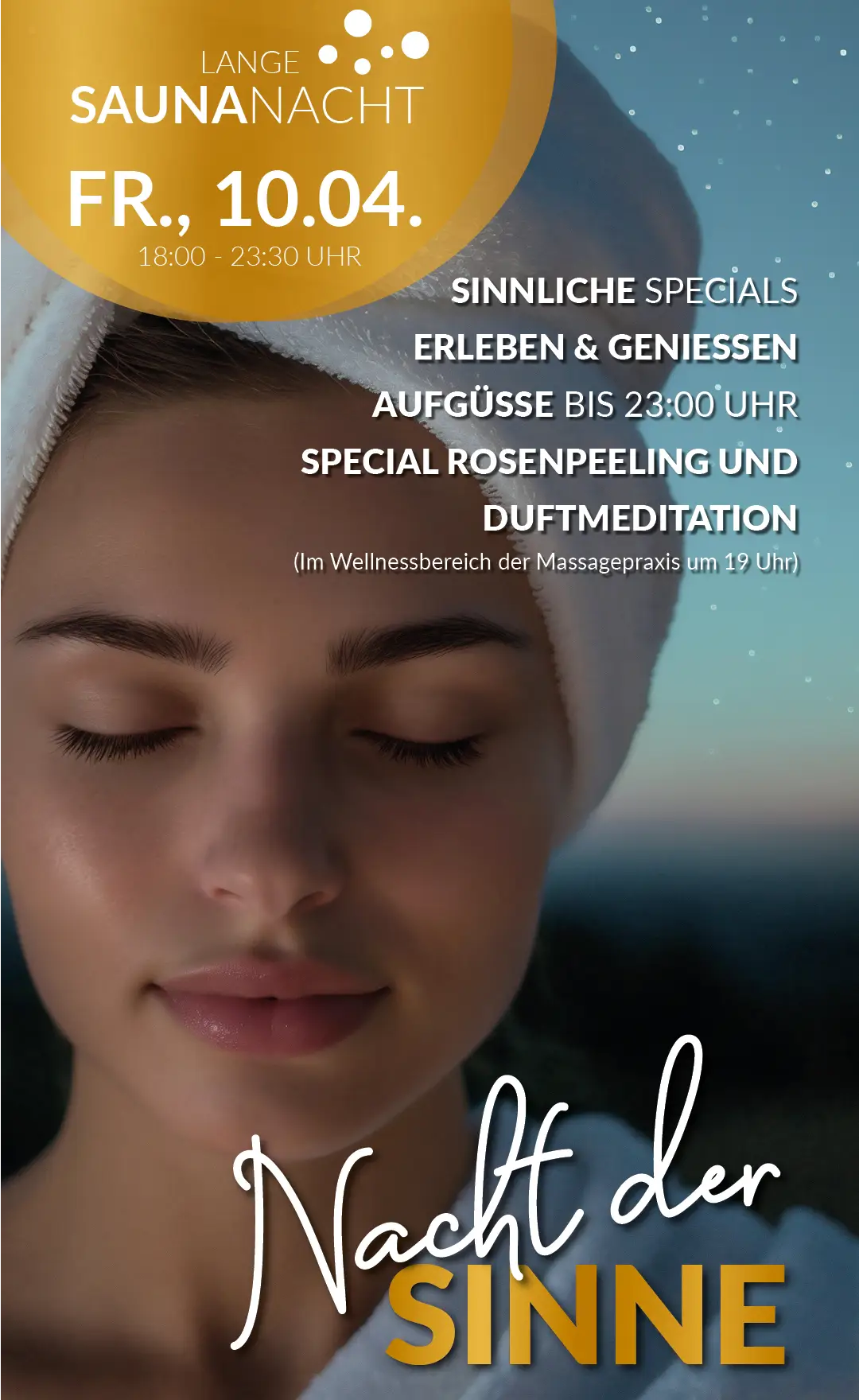 2026fri10apr18:00fri23:30Nacht der SinneBadria Spa, Alkorstraße 1418:00 - 23:30