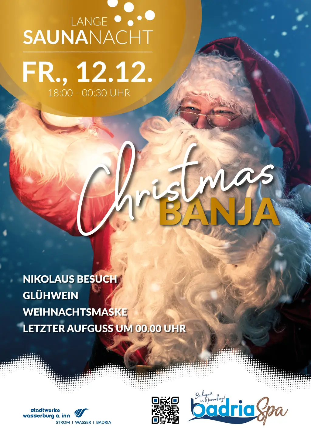 Entfliehen Sie dem Weihnachtsstress und genießen Sie eine wohltuende Auszeit in der Sauna des Badria! Am 12. Dezember laden wir Sie herzlich zur *Christmas Banja* ein – einer festlichen Saunanacht,